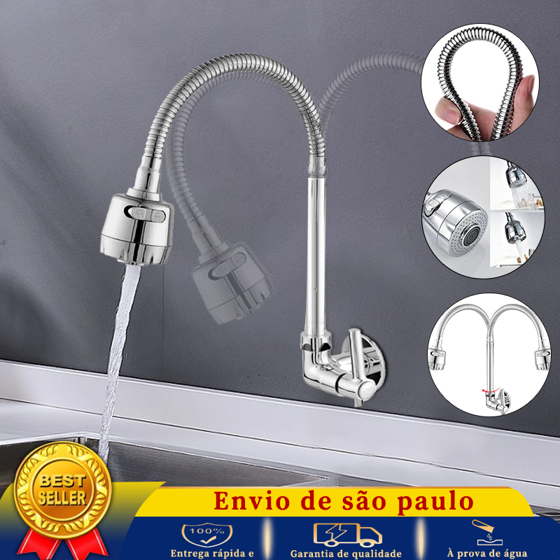Torneira Gourmet Cozinha Parede Pia Cano Flexível Inox 1/4 de volta