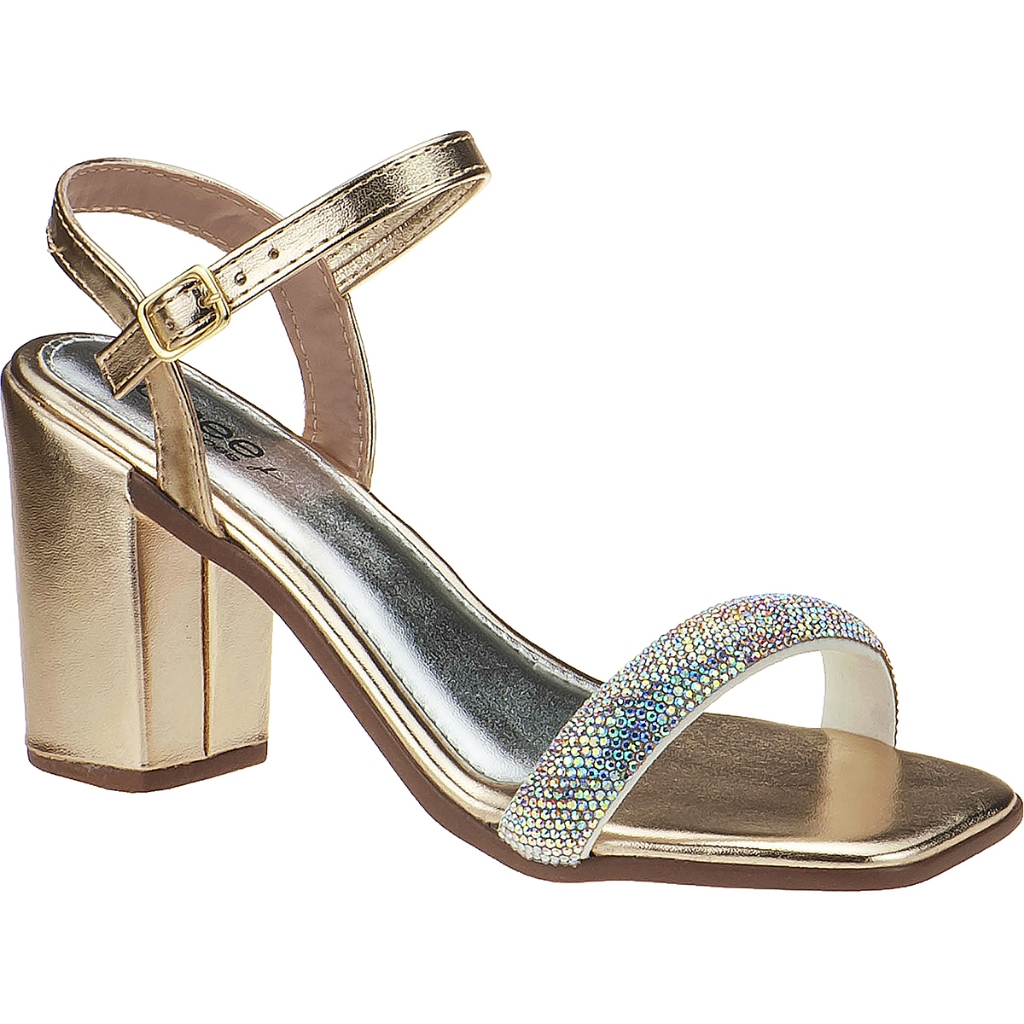Sandália Feminina Brilho Strass Salto Alto Bloco Tiras