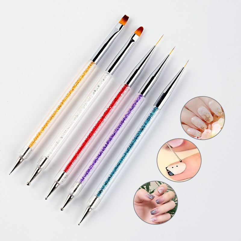 Kit 5 Pincéis e Boleadores 2 Em 1 Ponta Dupla Decoração de Unhas Nail Art Pontilhismo Manicure Pedicure Arte Sedução pincelde de unha unhas