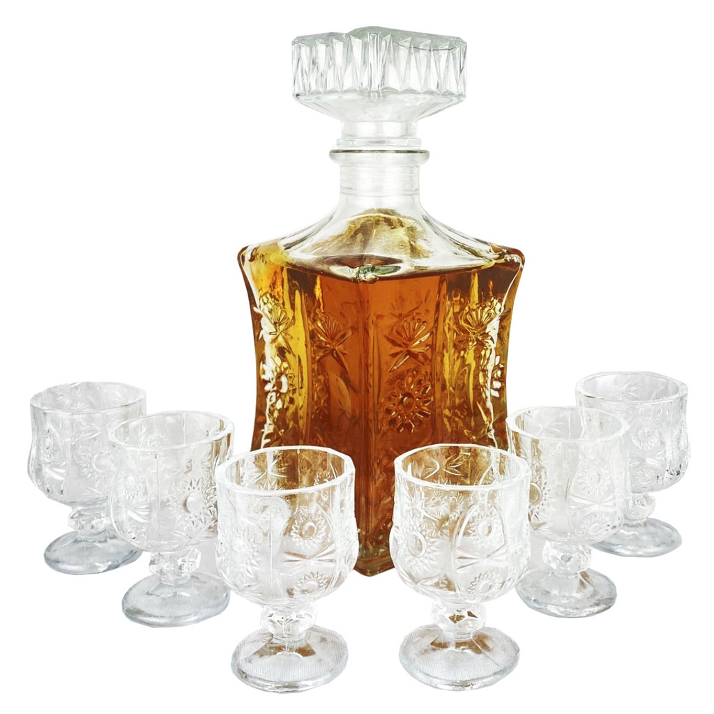 Kit 1 Garrafa Licoreira de Vidro com 6 copos para Whisky, Licor