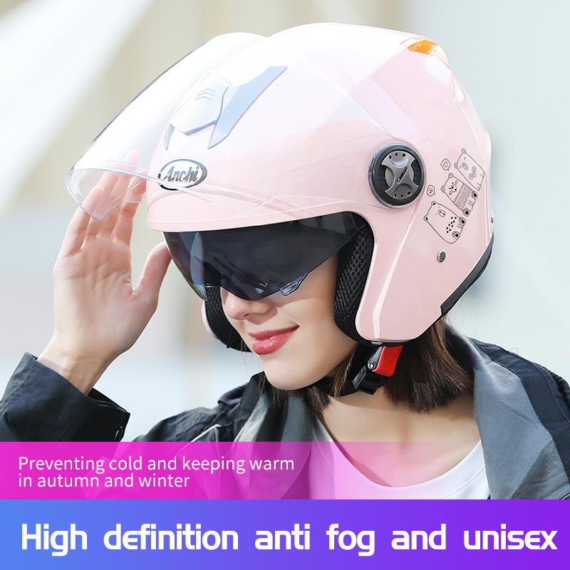 Anchi 3C Capacete de veículo elétrico com bateria certificada Capacete de motocicleta feminino Capacete de motocicleta masculino Capacete de inverno Quatro Estações Meio Hel