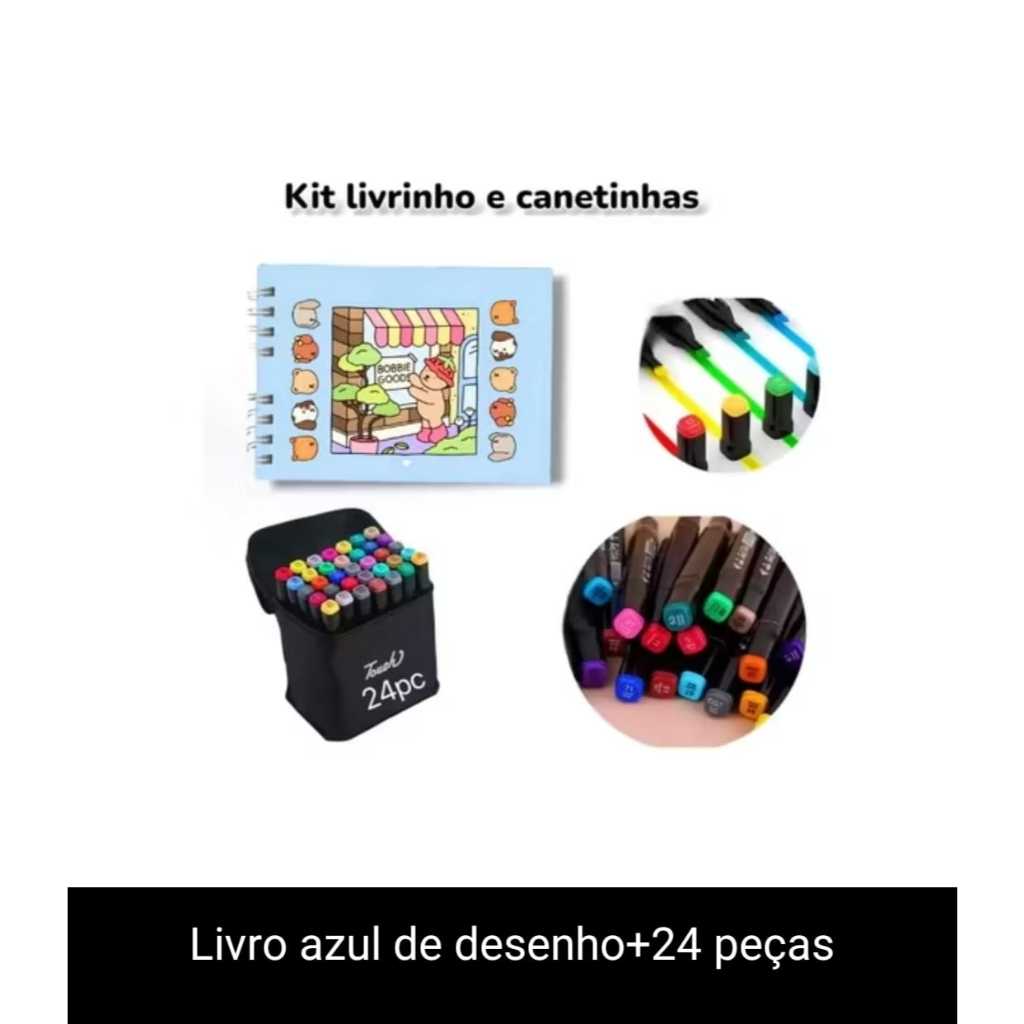 kit Livro de Colorir Bobbie Goods 24 -168 Canetinhas Com Ponta Dupla Marcador 50 Paginas Desenho Caneta Stitch Capivara