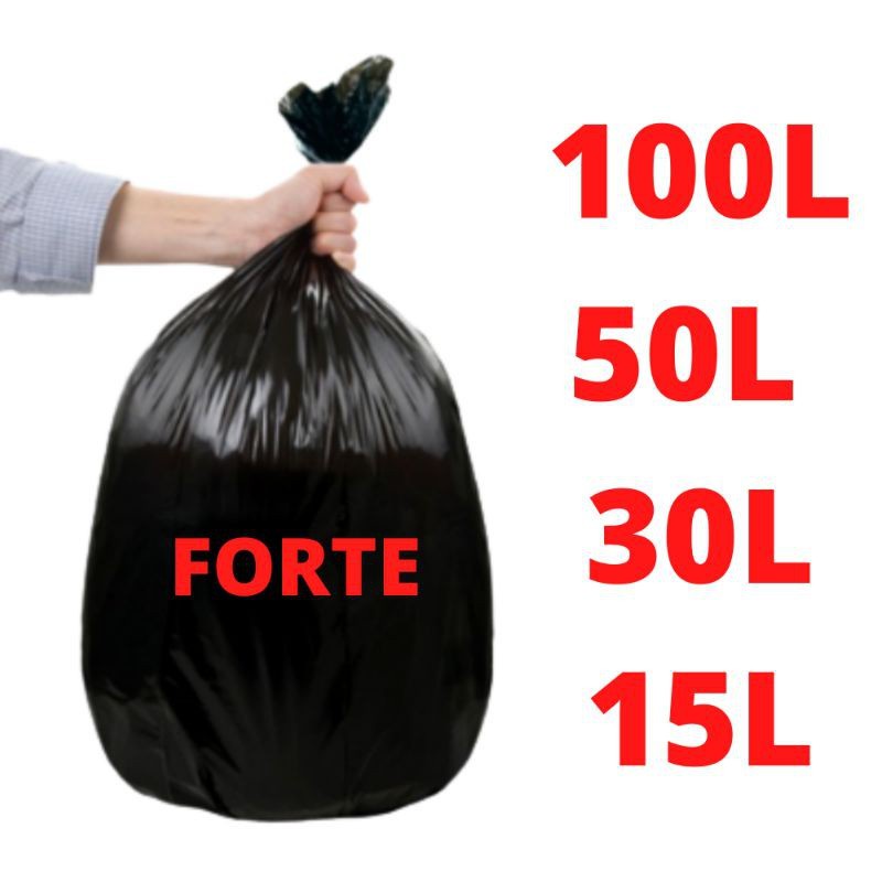 Saco de lixo preto plástico resistentes para lixeira econômico vários tamanhos 15 litros 30 litros 50 litros 100 litros