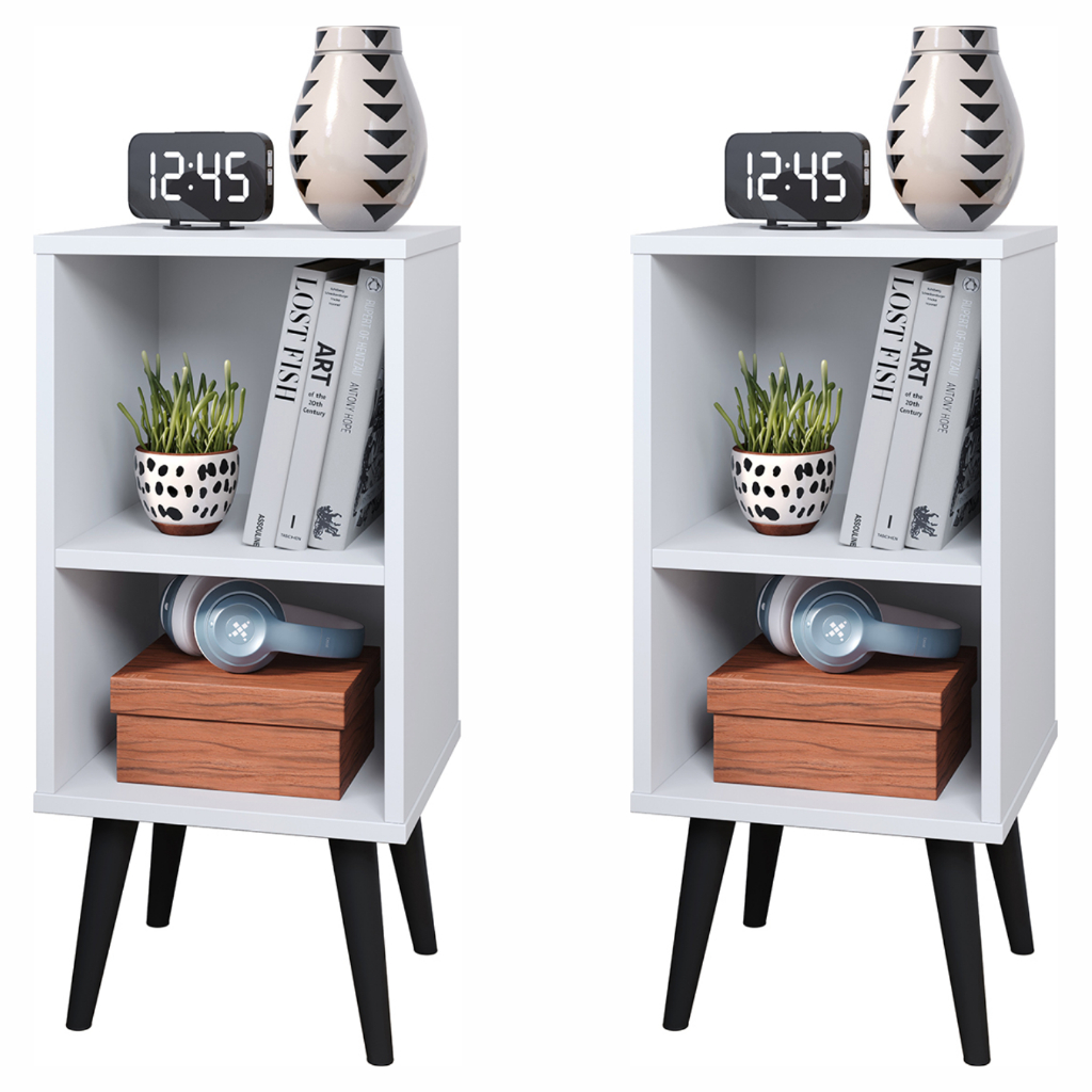 Kit 2 Mesa de Cabeceira para Quarto Charme Retrô Cor Branco Apoio de Cama Mesinha