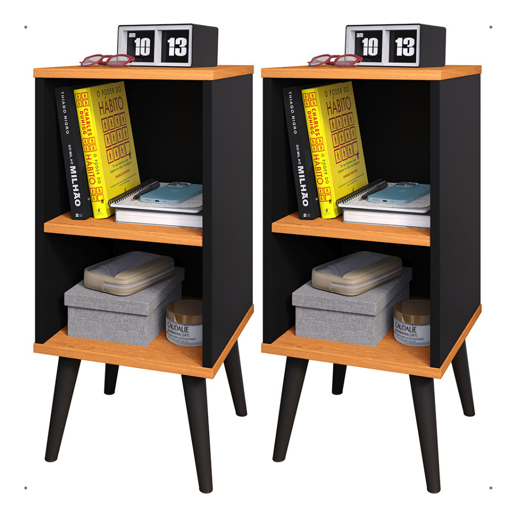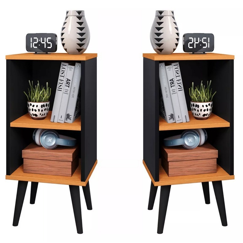 Kit 2 Mesa de Cabeceira para Quarto Charme Retrô Cor Preto Cinamomo Apoio de Cama Mesinha
