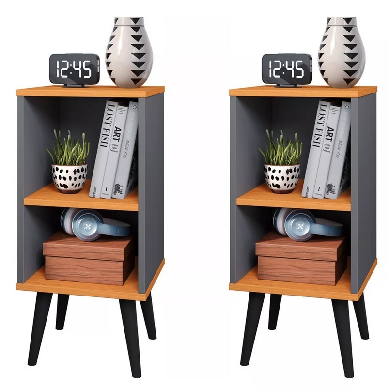 Kit 2 Mesa de Cabeceira para Quarto Charme Retrô Cor Cinza Cinamomo Apoio de Cama Mesinha