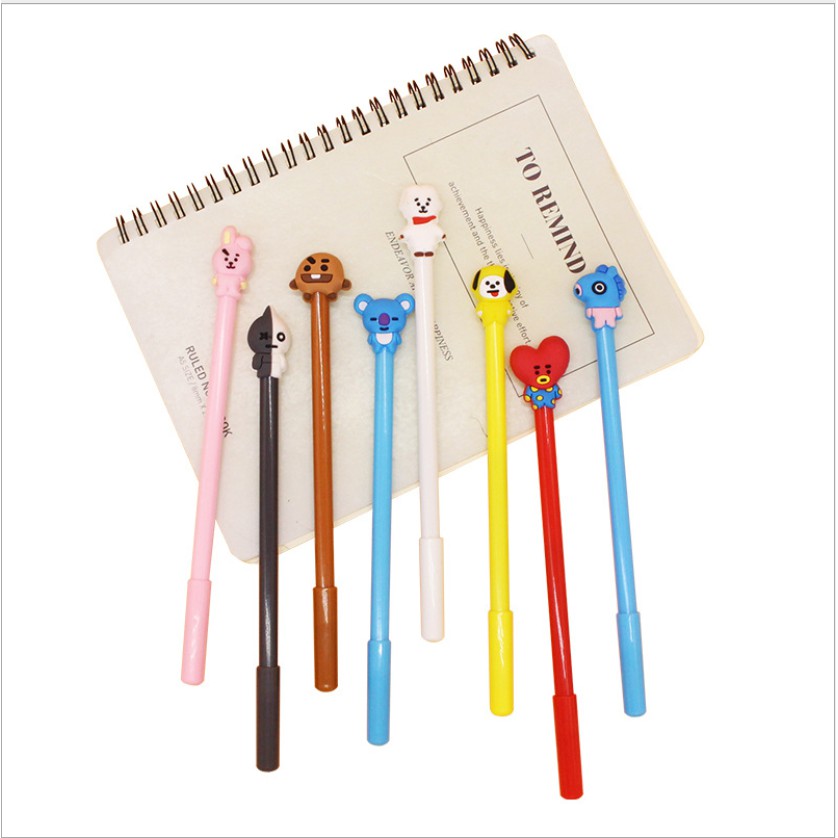 8 Pcs/Conjunto Kpop BTS BT21 Caneta Gel Bangtan Boys Suprimentos De Papelaria Fofo Preto 0,38mm