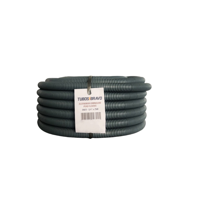 Conduíte Corrugado Cinza 3/4 X 25m - DN 25 - Pead - Eletroduto REFORÇADO