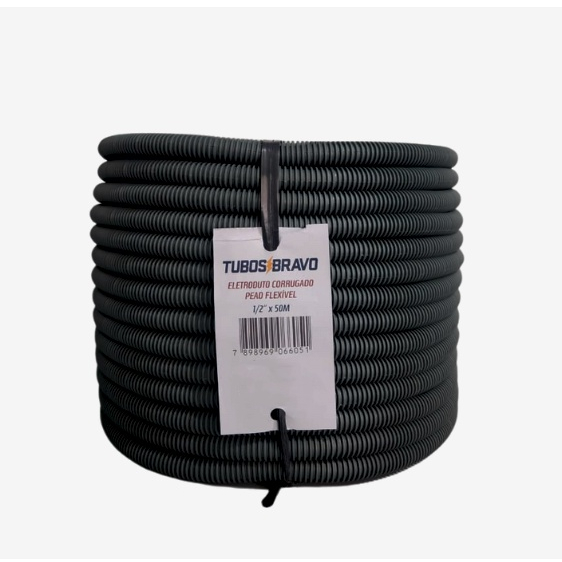 Conduíte - Eletroduto Corrugado PVC Ecológico Flexível Tubos Bravo Cinza DN 25 - 3/4 x 50m