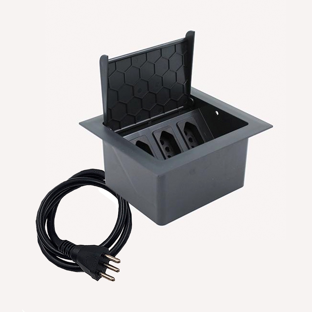 Caixa De Tomada Embutir Mesa Home Office Com 3 Tomadas