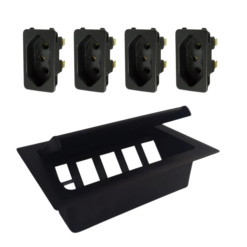 CAIXA DE TOMADA P/ EMBUTIR EM MESA + 4 MÓDULOS TOMADAS