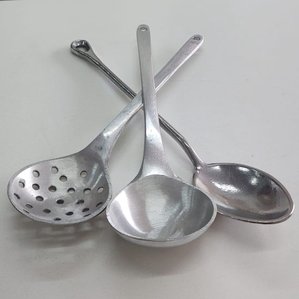 Kit 3 Peças Colher De Arroz, Concha Escumadeira De Alumínio