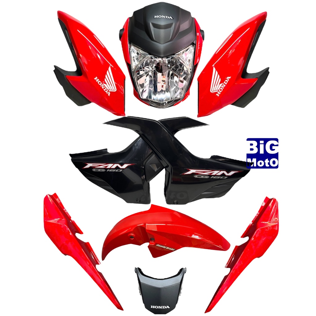 Kit Fan CG160 2022/23/24 Vermelho Perol. -Farol com Aranha+Par Aba com Complemento+Par Tampa lateral+Paralama+Rabeta