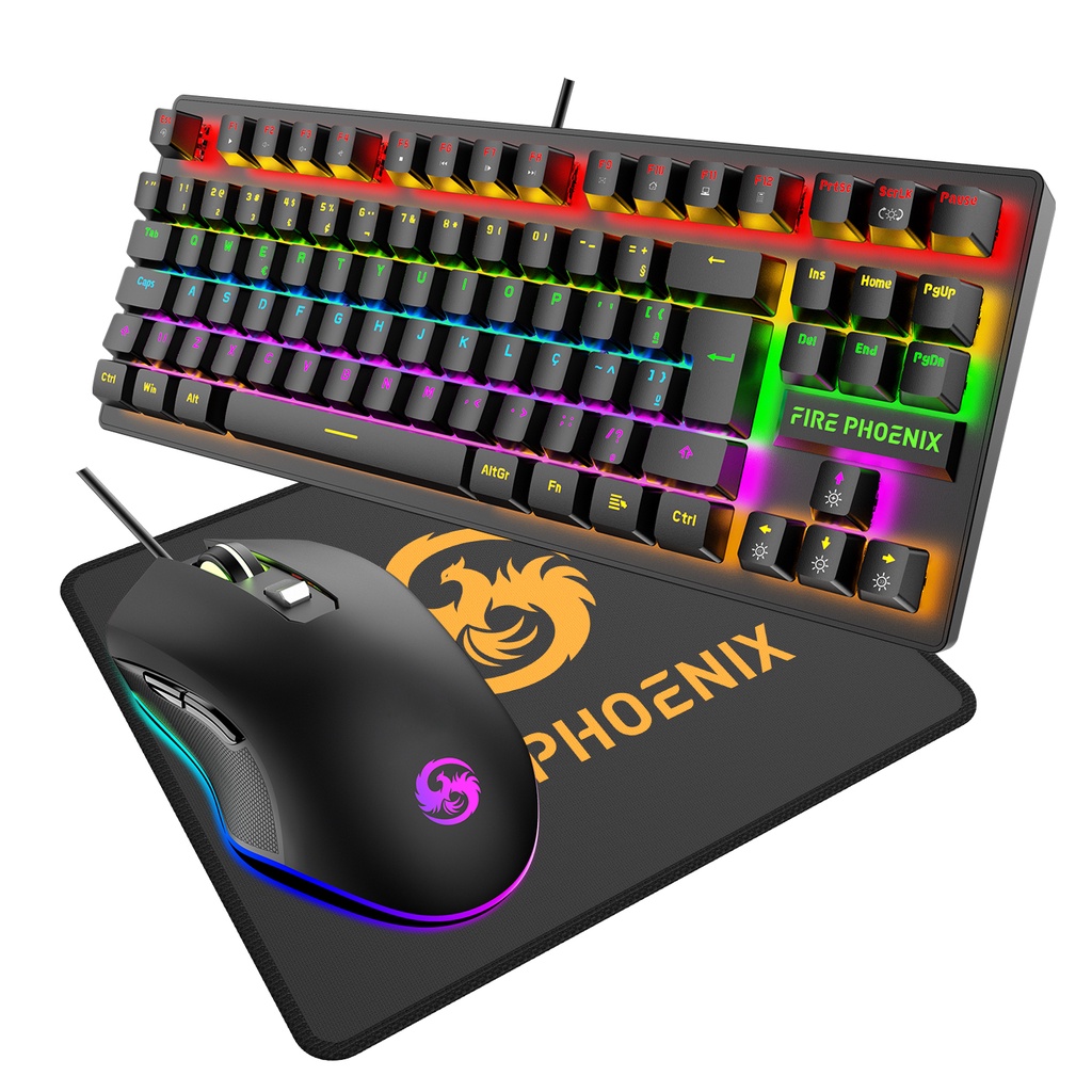 Teclado e Mouse Mecânico Fire Phoenix - Gamer Rgb Led Switch - BK-05