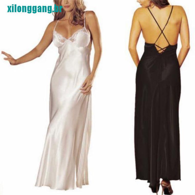 Camisola Feminina Sensual De Cetim E Seda Com Renda