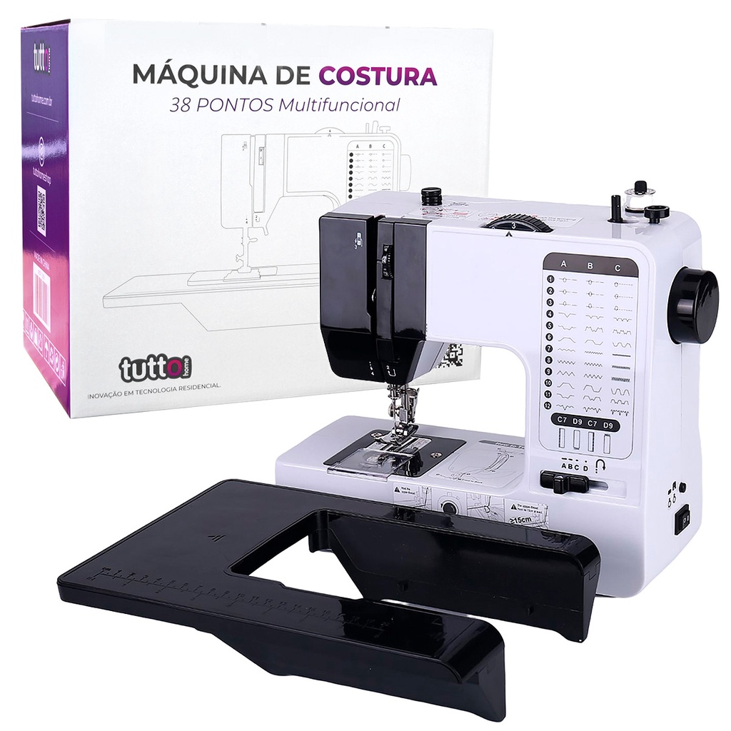 Máquina de Costura Multifuncional 38 Pontos Semiprofissional Reta Ziguezague Overlock e outras costuras Bivolt 110V 220V