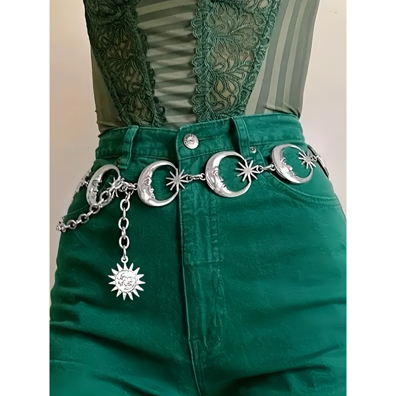 Cinto Corrente oca de lua e sol Y2K com franjas tendência de vestido ajustável para feminino