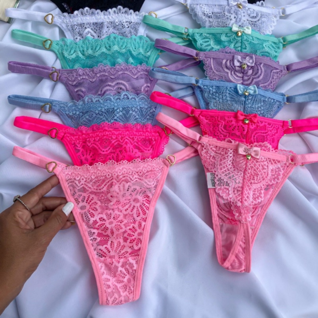 Kit 10 Calcinhas Sexy Em Renda Tanga Fio Dental com Regulagem Coração