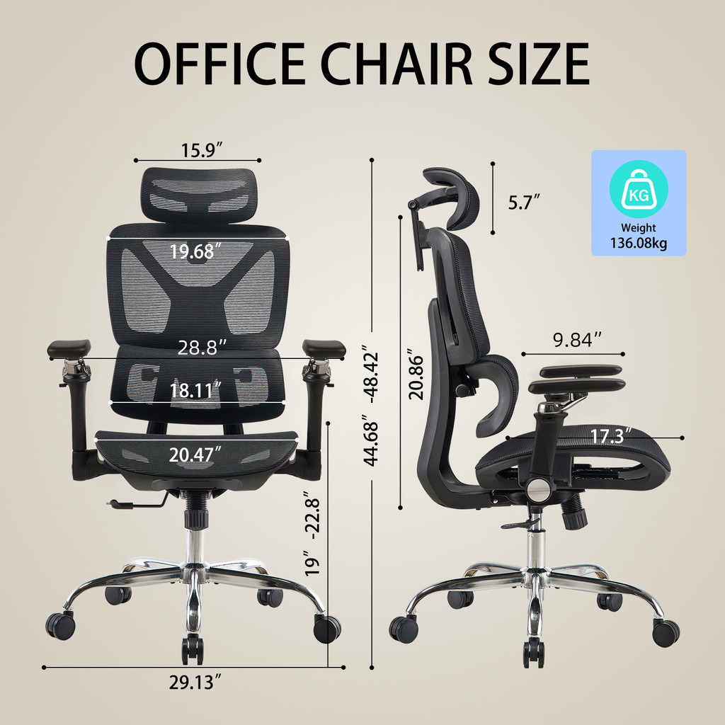 Cadeira Ergonômica para Escritório com Apoio Lombar Ajustável e Tecido Respirável Suporta 150kg