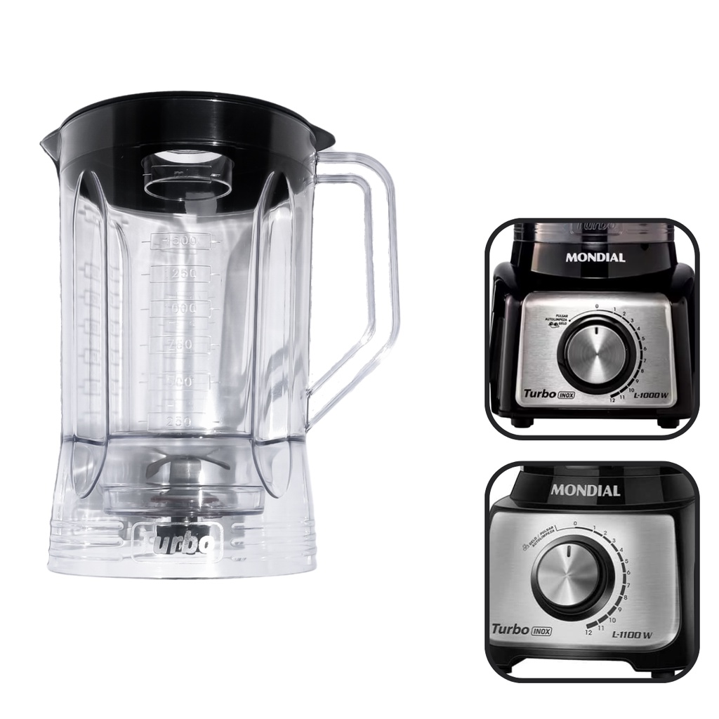 Copo para Liquidificador Mondial Turbo Inox L-1000 L-1100 L-1200 Preto