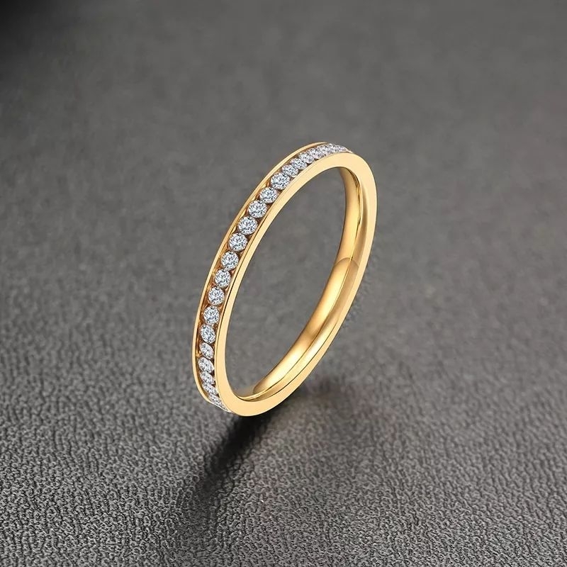 Anel Aparador Solitário Dourado e Prata Em Aço Inoxidável Cravejado Com Pedra Zircônia