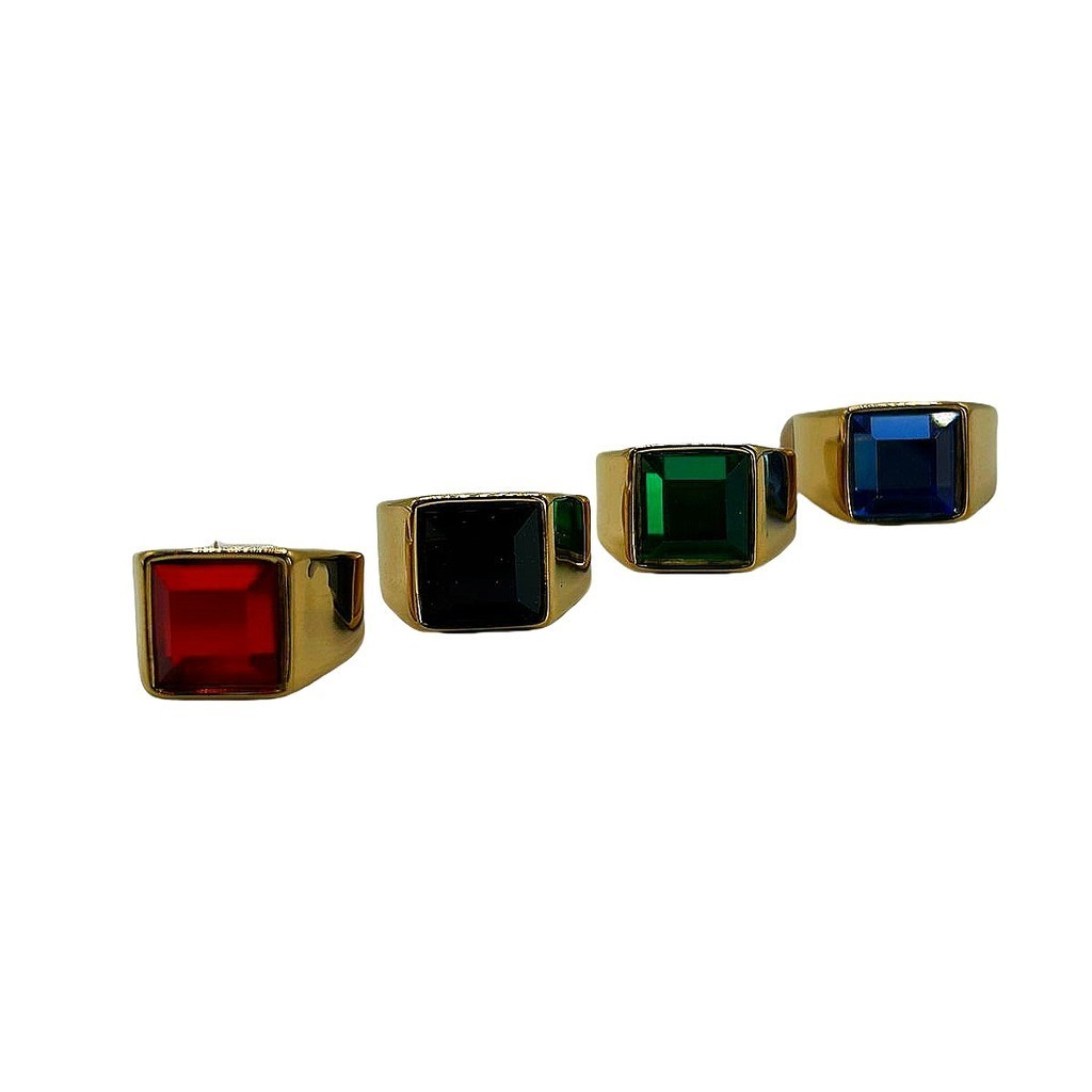 Anel Dedeira em Aço Inoxidavel com Pedra Vermelha/Verde/Azul/Preto Quadrado Grande