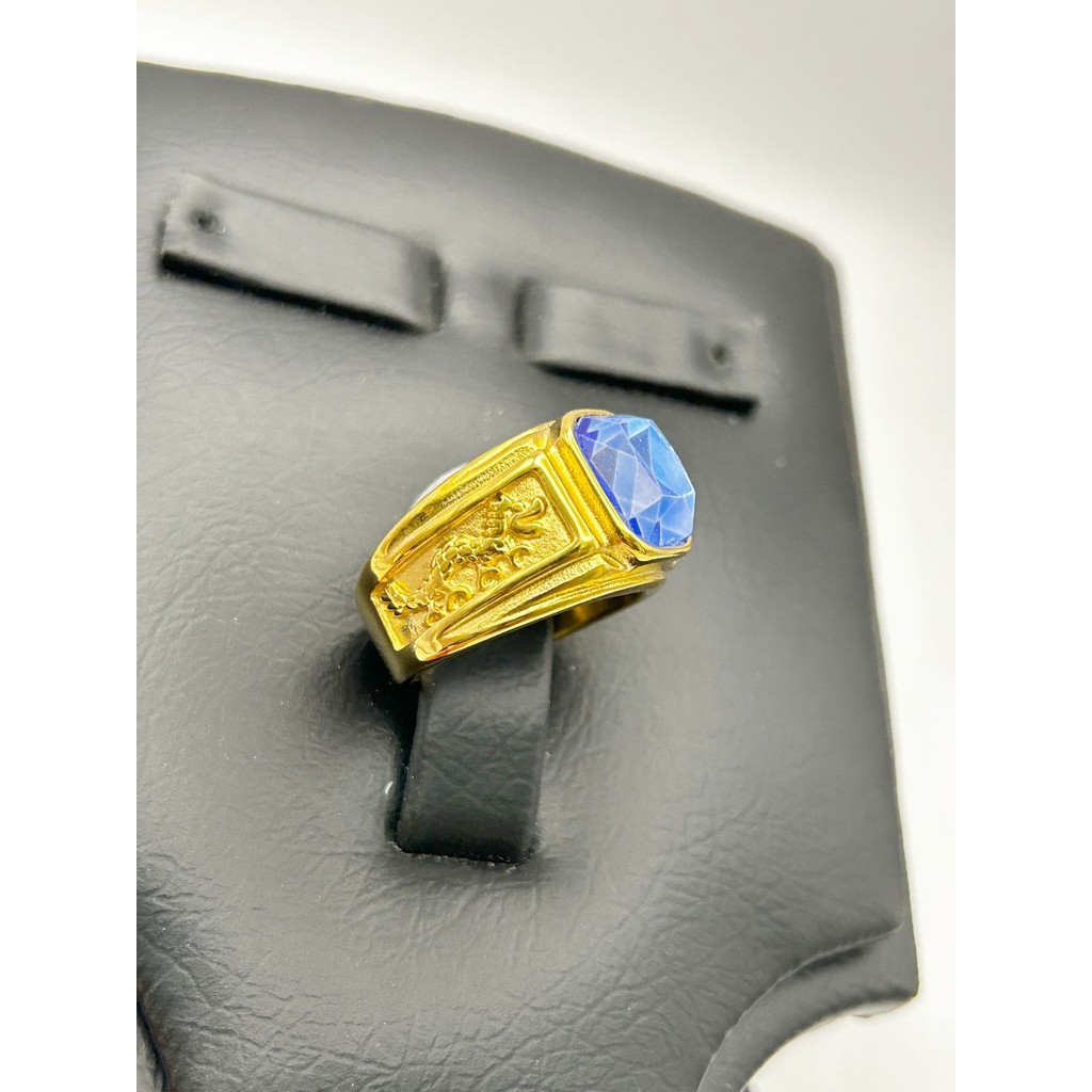 Anel Masculino Dedeira Nossa Senhora Aparecida Crevajada EM AZUL Banhado A OURO Aço Inoxidável Moda Hip-Hop Anel Rock Solid 18k