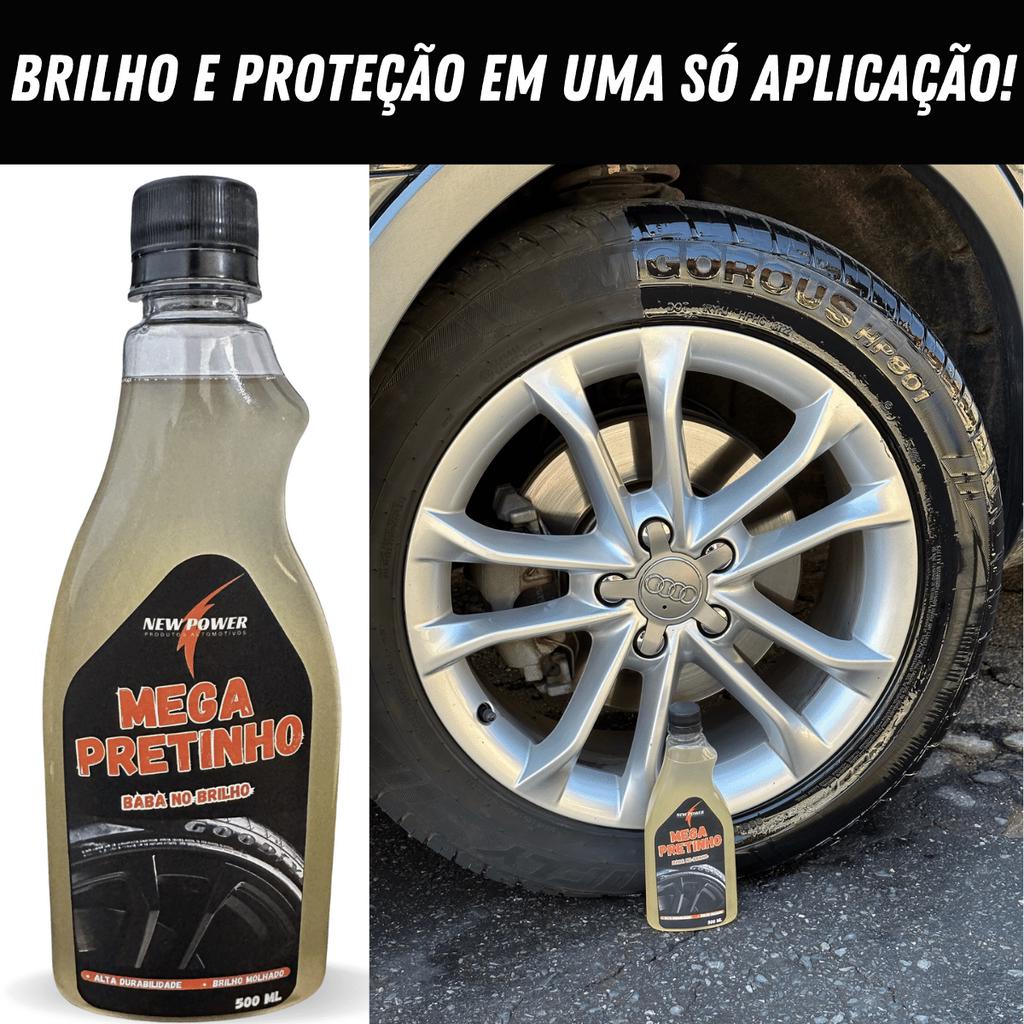 Mega Pretinho New Power Melhor que Baba, 500ml extra brilho excelente Para Pneus NÃO SAI COM ÁGUA