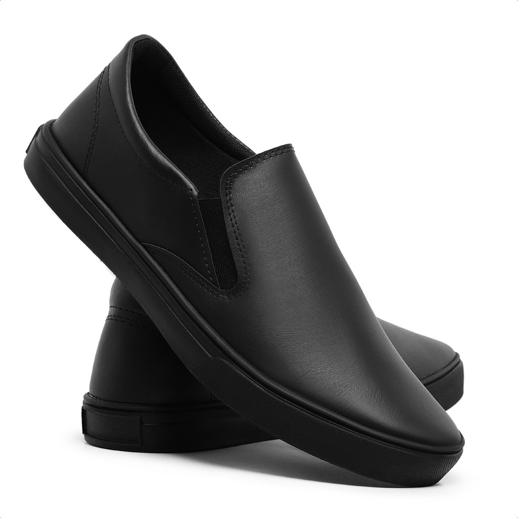 Tênis Sapatênis Preto Slip On Iate Masculino Sem Cadarço Calce Fácil Leve Confortável