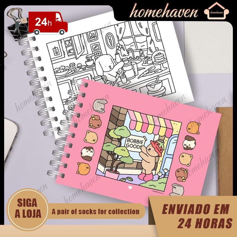 Livro de colorir Bobbie Goods A5 capa dura 50 folhas 180g caderno de desenho pintura ursinho