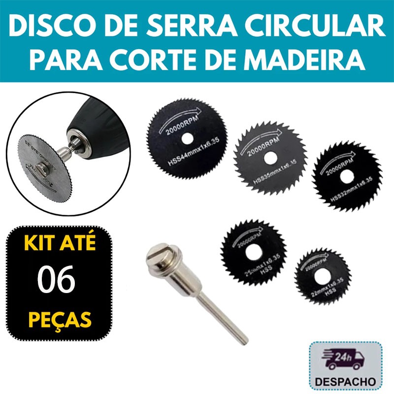 Kit Mini Serra Circular Disco Para Madeira Lâmina com Adaptador Furadeira Parafusadeira até 6 peças
