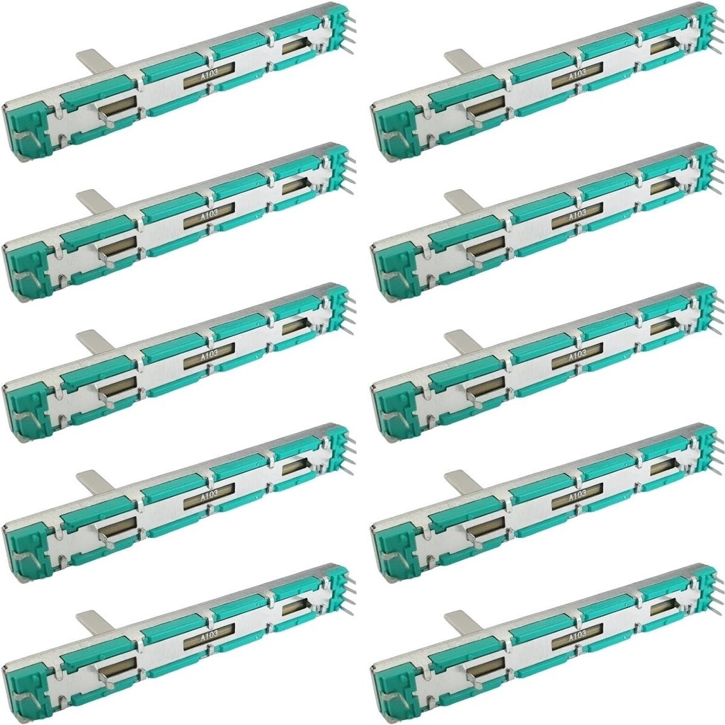 Potenciômetro Deslizante Fader 10K A103 Duplo, Percurso 60mm (Total 75mm) Mesa de Som Ciclotron Behringer - Kit 10 Peças
