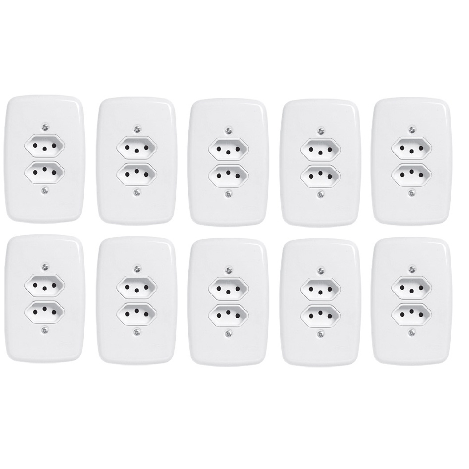 Kit 10 Tomada Dupla 10a Com Placa Branca 4x2 Pluzie 1° Linha