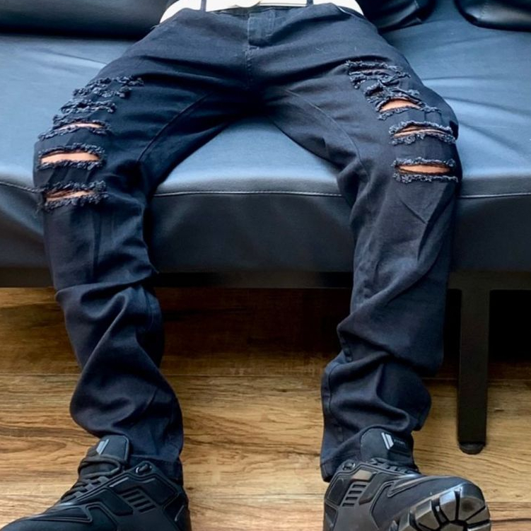 Calça All Black Drip US Skinny Trapper Modelo Gringo Corte ajustado estetico Destroyed rasgos rasgada