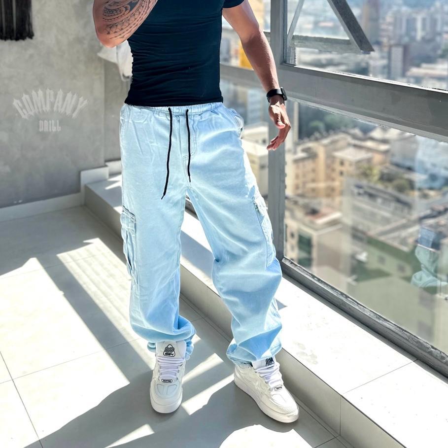 Calça Cargo Jeans Clara Drip us - Corte Reto estilo Balão, Wide Leg Moda Cargo Retro Vintage Culture Rap Trap Anos 2000