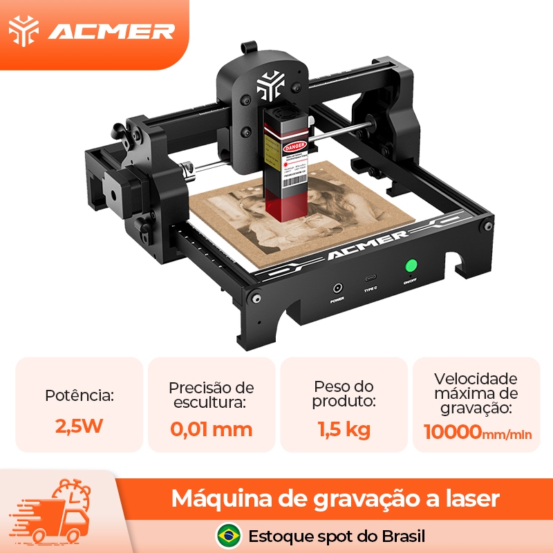 Acmer S1 Impressora Maquina Gravador Corte Laser 24w Área CNC Laser 2.5w com carretel