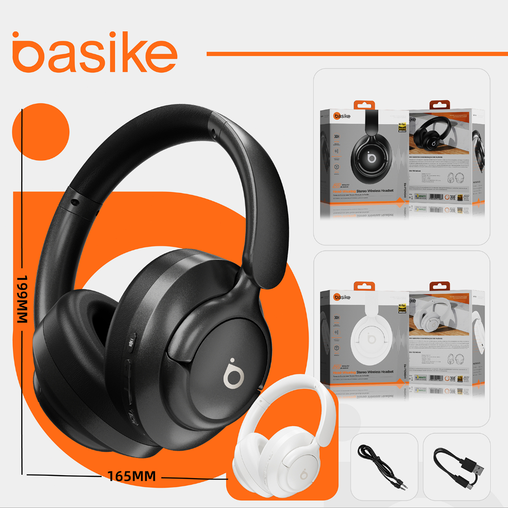 Basike fone de ouvido sem fio Bluetooth microfone embutido estéreo de redução de ruído ativo