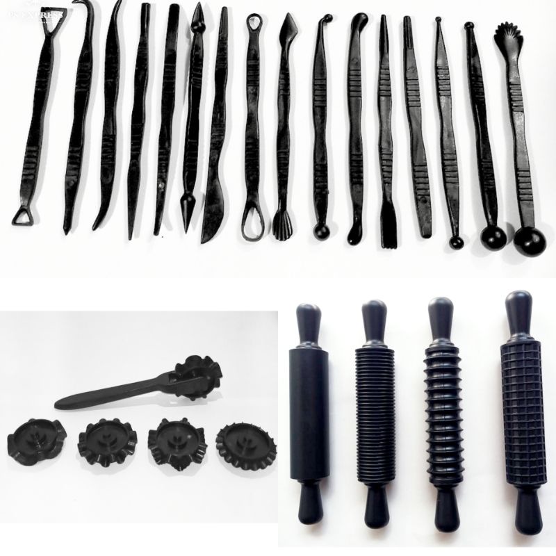Kit Estecas 16 Ferramentas + Cortador Carretilha 5 em 1 + 4 Rolos Liso e Marcadores