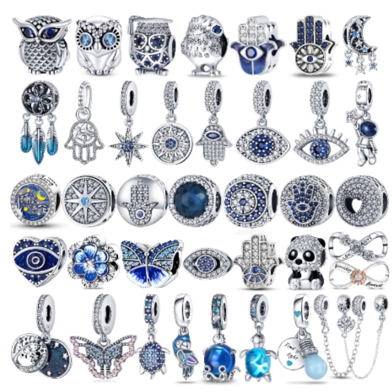 925 Original Silver Evil Eye Charm Owl Blue Balão De Ar Quente Para Pulseira De Prata Olho Do Diabo