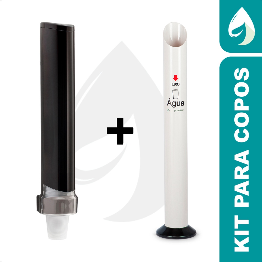 Kit Lixeira Para Copos + Dispenser Porta Copos Easy Flex Preto 180/200ml