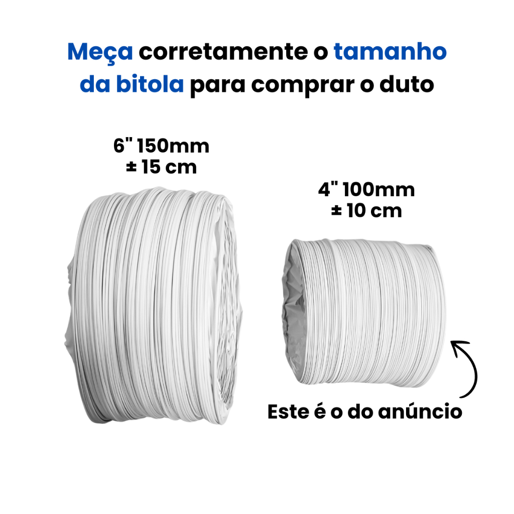 Duto PVC 3 Metros X 4" Polegadas Flexível Ventilação Exaustor Coifa Ar Condicionado Alta Resistência