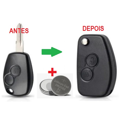 Kit Capa Chave Renault Sandero Loga Duster Novo Clio 2 botões + Bateria