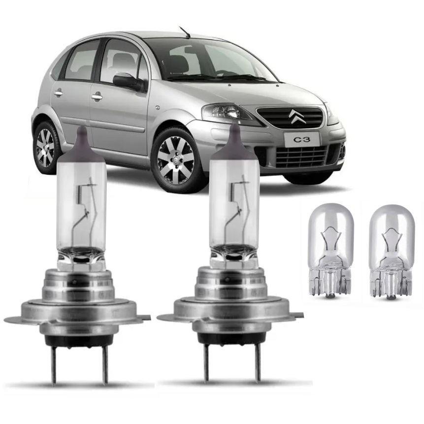 Kit Lâmpadas Farol Citroën C3 2003 2004 2005 2006 2007 2008 2009 2010 2011 2012 103 2014 2015 2016 2017