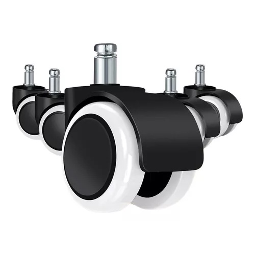 Kit 5 Rodinhas Rodízio Universal Para Cadeira De Escritório Giratória Pu Anti Risco 50mm Preto Ultra Resistente 120 kg