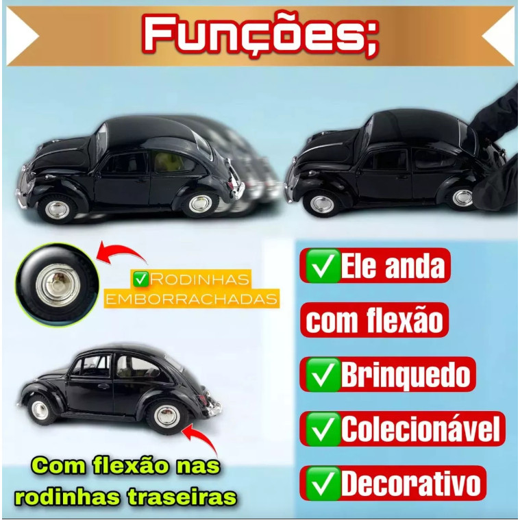Carrinho De Ferro Com Fricção Metal Fusca Clássico Miniatura Coleção Volkswagen