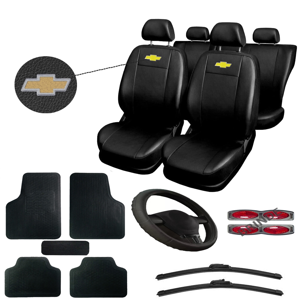 kit capa e assentos para banco de carro couro sintético chevrolet + tapete + volante + palhetas corsa celta prisma astra agile ônix montanha