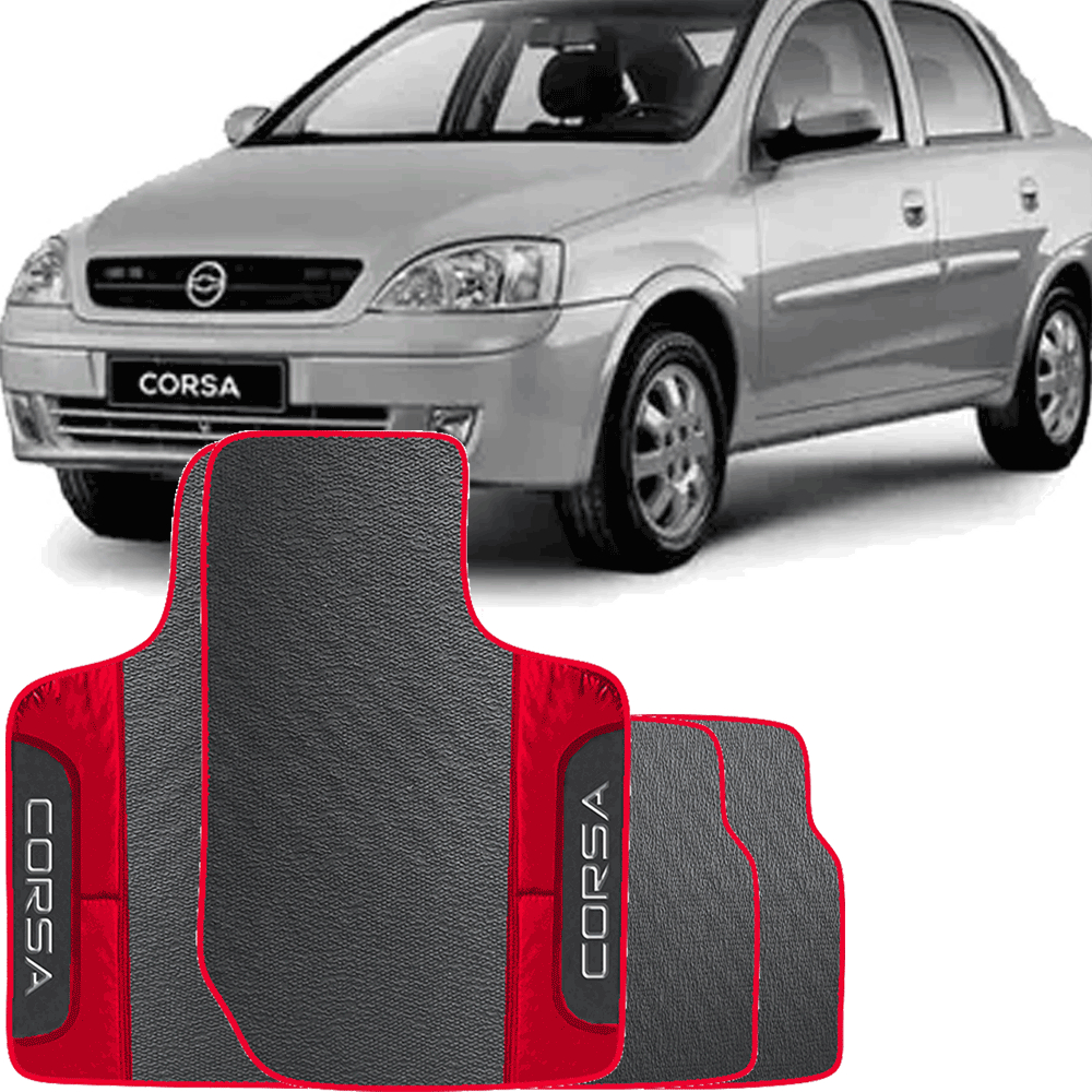 LINDO JOGO TAPETE 4 PEÇAS CARRO AUTOMOTIVO NA COR VERMELHO CHEVROLET CORSA SEDAN JOY 2003 A 2009 FRENTE MONTANA TODOS EMBORRACAHDO ECOLOGICO
