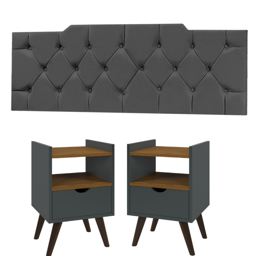 KIT 2 Mesa de Cabeceira Com 1 Gaveta e Cabeceira Painel Cama Box Queen Estofado Suede Varias Cores