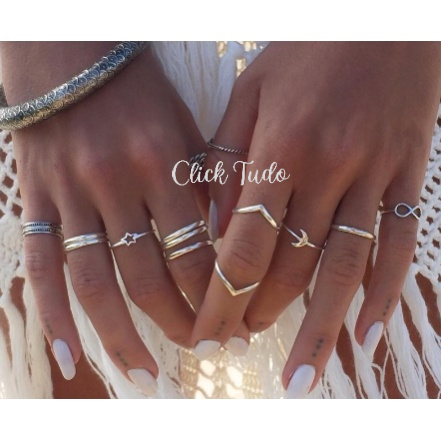 Anel Prata kit 12pçs Promoção Feminino Moda Vintage