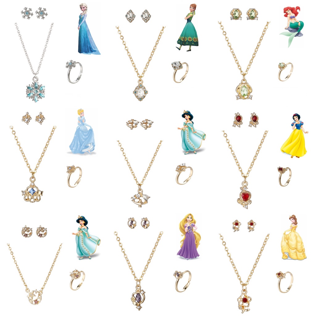 3 Pçs/Set Disney Princesa Anel Brinco Colar De Moda Feminina Elegante Coroa Embutidos Zircon Ajustável Aberto Presente Da Jóia Conjunto